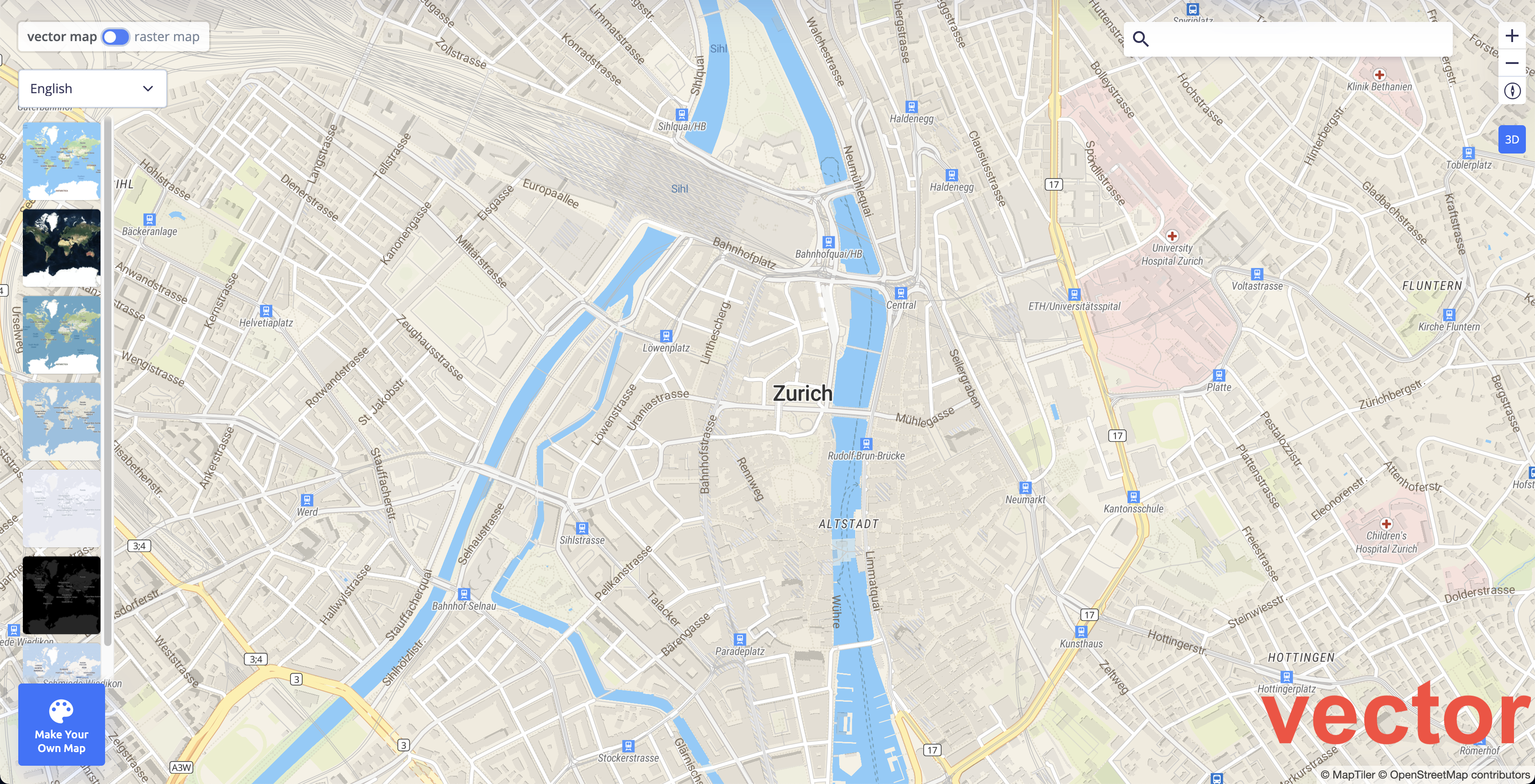 MapTiler offers both raster and vector map tiles of the whole planet for any application