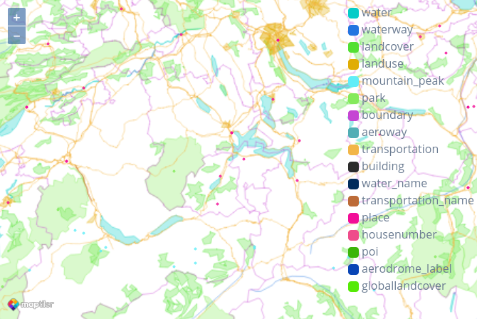 Most commonly, the primary map source will be a vector tileset like MapTiler Planet, which provides the base geographic information. Other vector tilesets can be used to add more information to the map, for example, our Outdoor tileset with biking and hiking tracks.