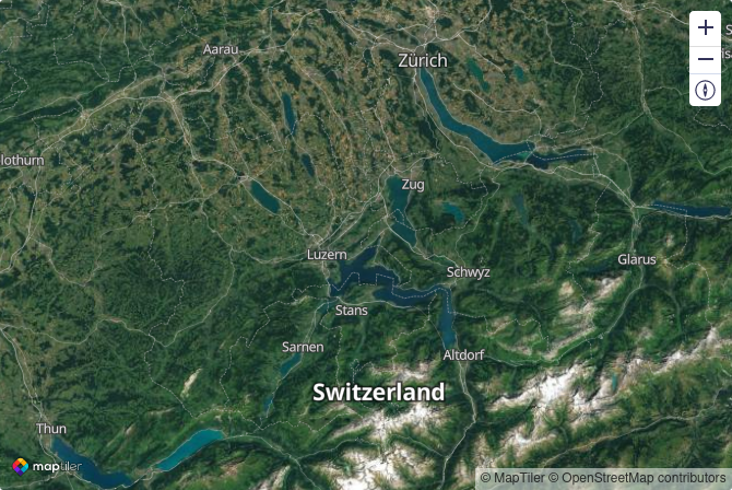 As additional map sources, raster tilesets usually provide aerial or satellite imagery, like our Satellite. Another use-case is to provide visuals that simply can’t be described by styling vector tilesets. See for example our Hillshades tileset that adds shading to hills and mountains, to look as if the sun was shining on them.