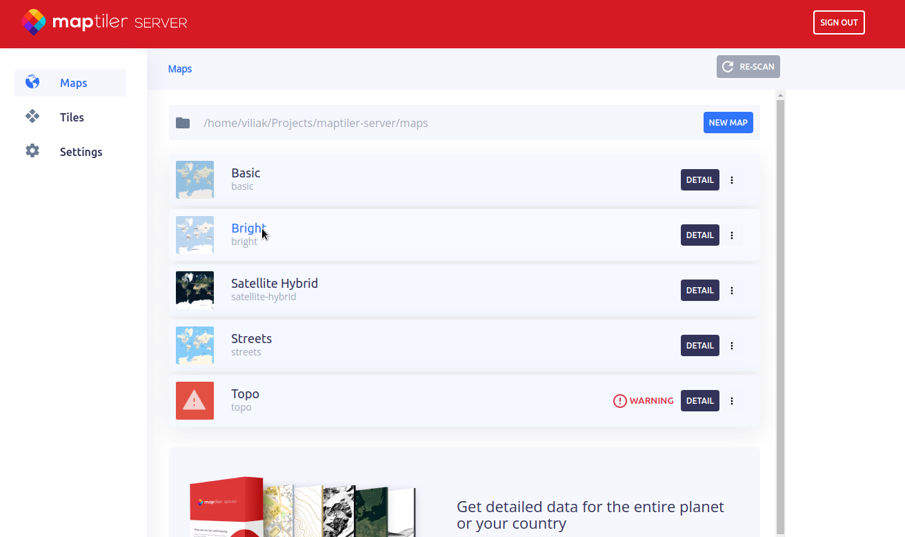 Now the server is all set and you can finally move to the MapTiler Engine section.