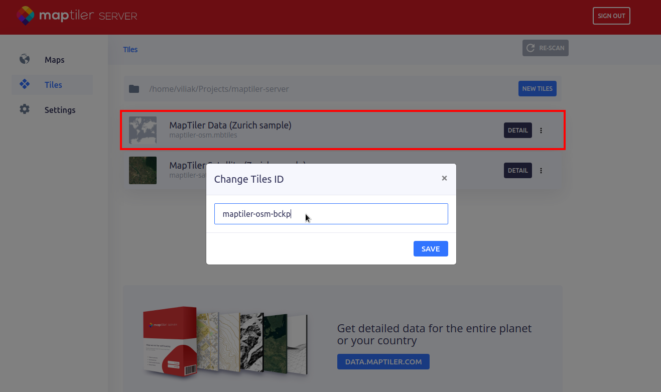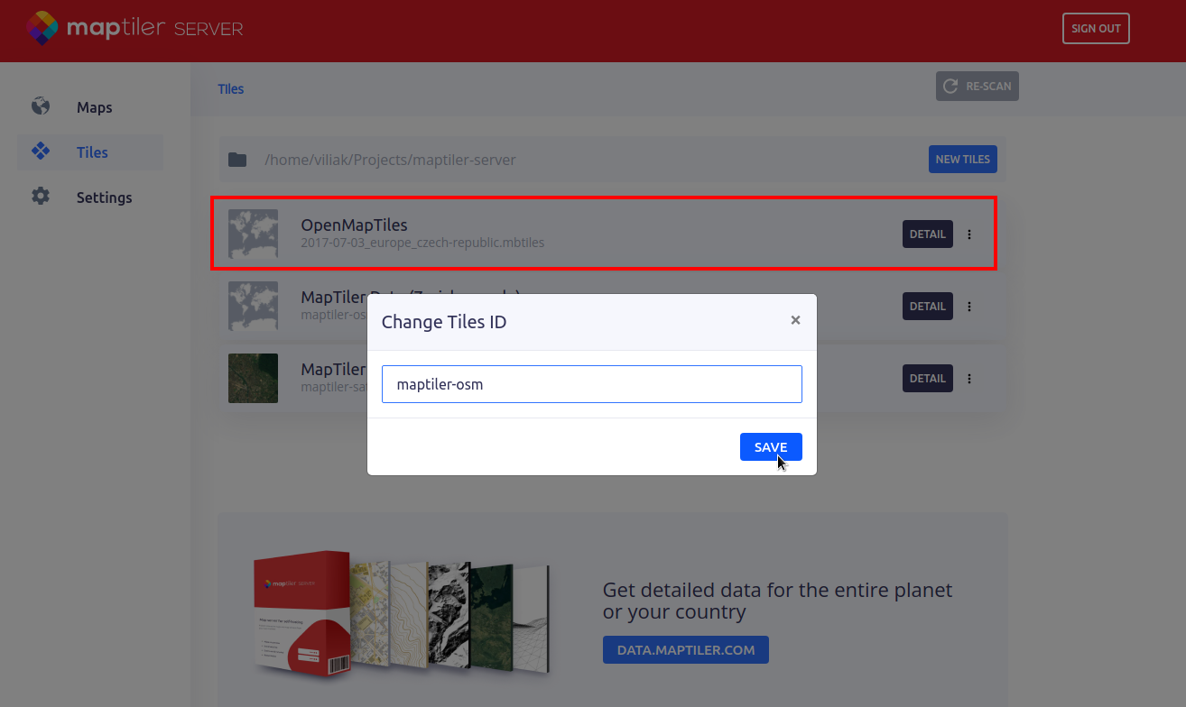 The last step on getting your server ready is setting its id to the previously mentioned value maptiler-osm.