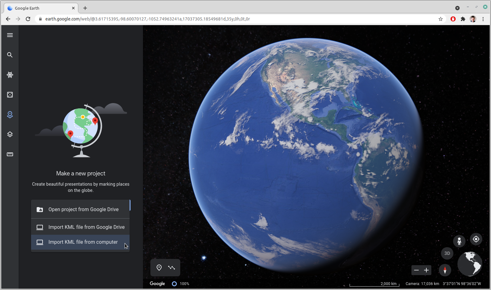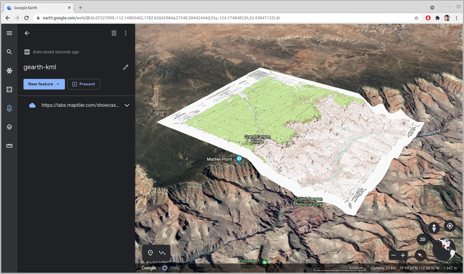 With MapTiler Engine it is also possible to create KML overlays for Google Earth. The procedure of preparing the necessary output is described in a separate article. In this article, we’ll take a look at how this output can be uploaded online and used with the browser version of Google Earth.