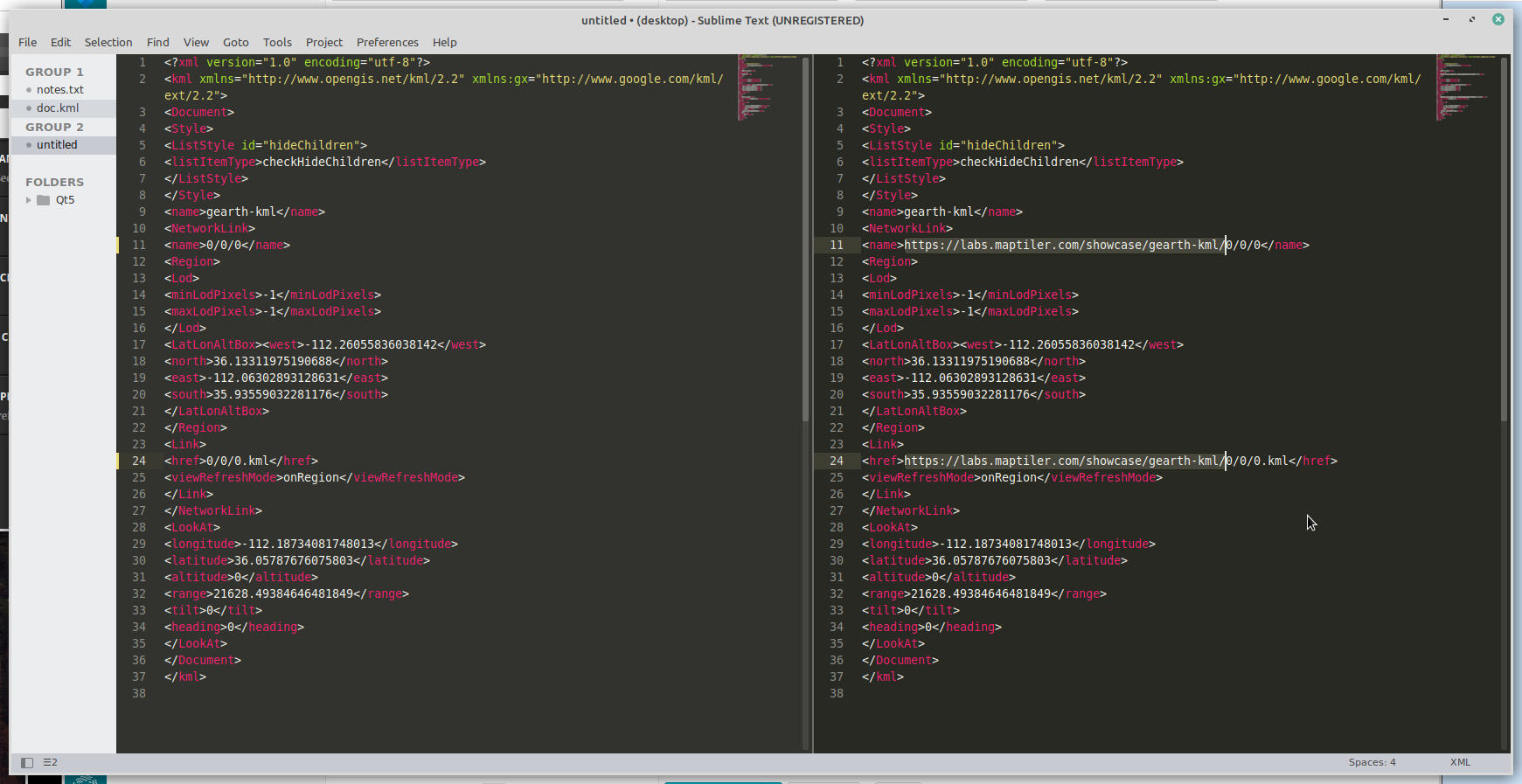 Open your local .kml file in any text editor and paste the final HTTPS URL of your online folder in the places shown below and save.
