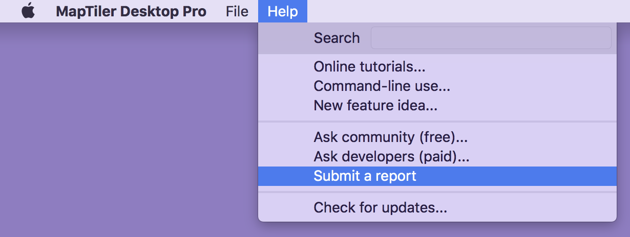 If you are running MapTiler from a command line and you encounter a problem, you can let the program generate a file with all the information for successful problem-solving. This can be done using the -report argument.