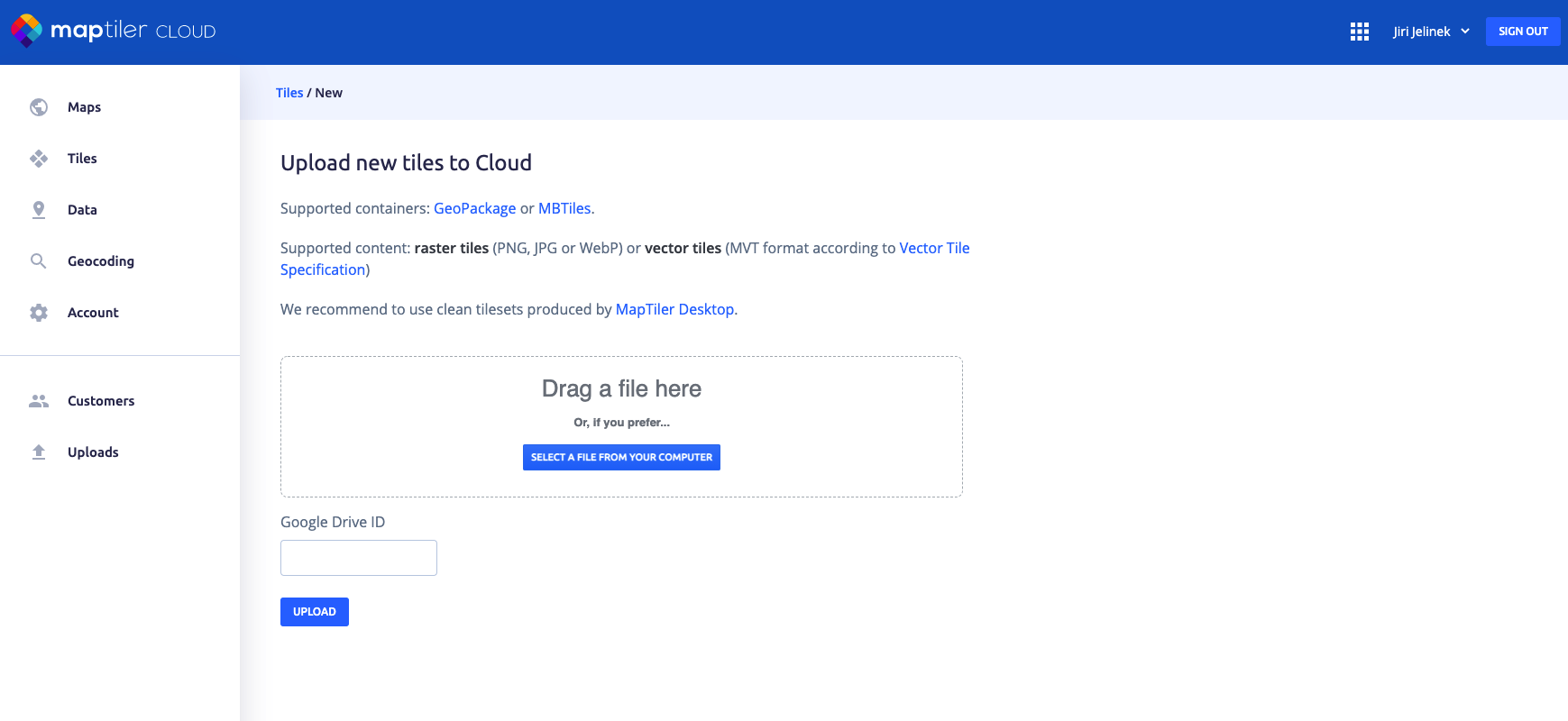 Upload your data to MapTiler