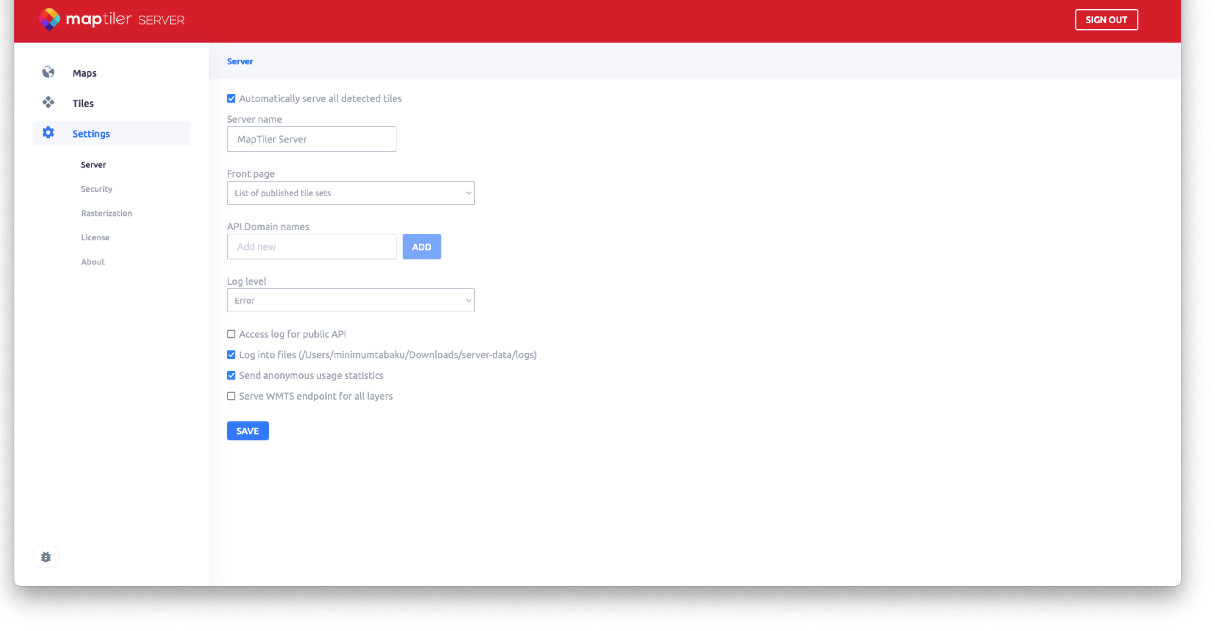 The next steps will walk you through setting up logging in the MapTiler Server. We will assume that the software is installed, if you need assistance on how to install MapTiler Server, check out