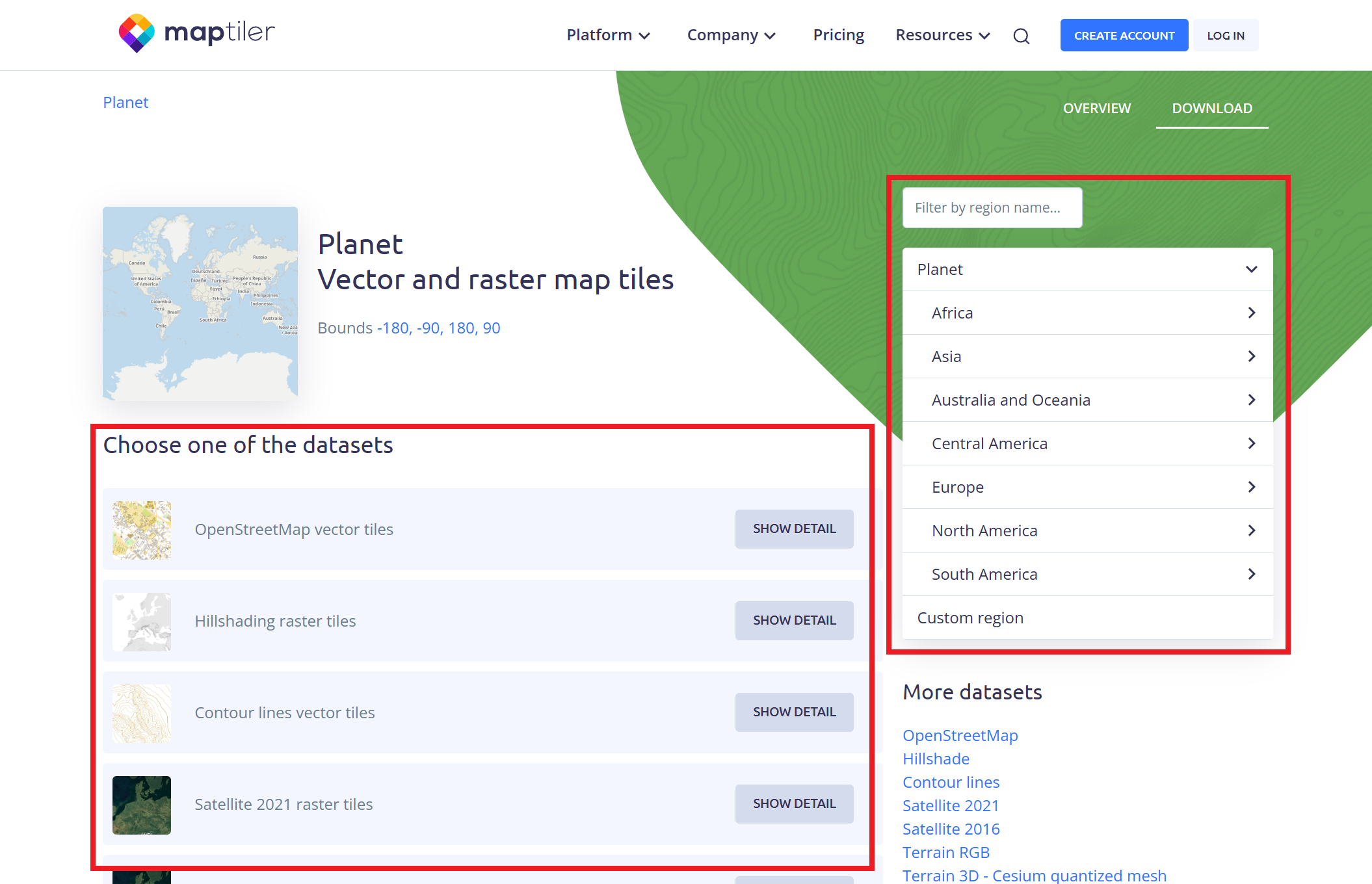 Terrain 3D - Cesium quantized mesh, MapTiler Planet Lite, or Landcover are only available for downloading the whole Planet.