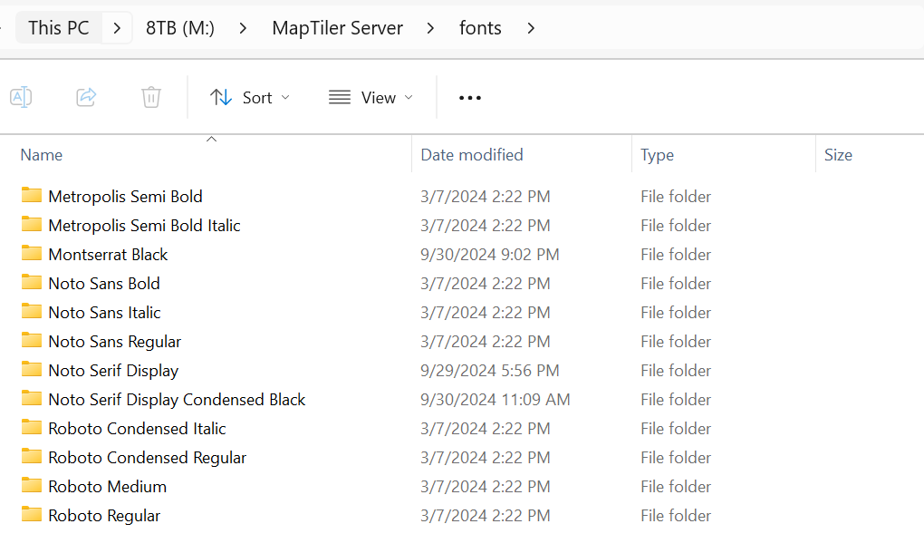For example, if you convert a font named “Montserrat Black” you should have a new folder with the same name in M:\MapTiler Server\fonts.