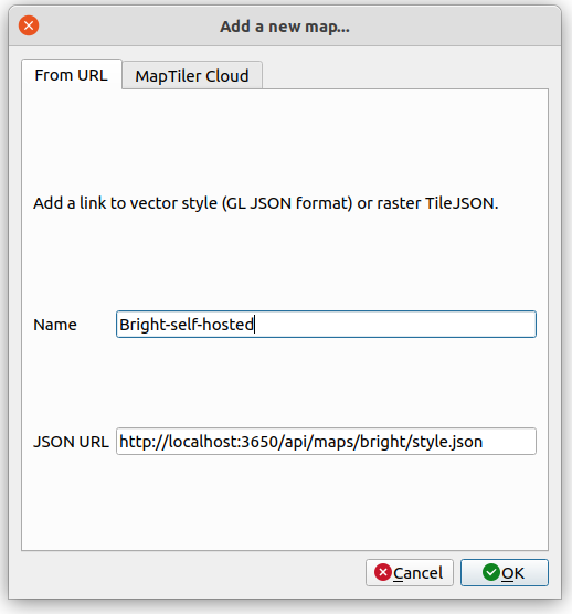 With a combination of MapTiler Server and MapTiler Plugin in QGIS, you can easily add a self-hosted map to your QGIS project.