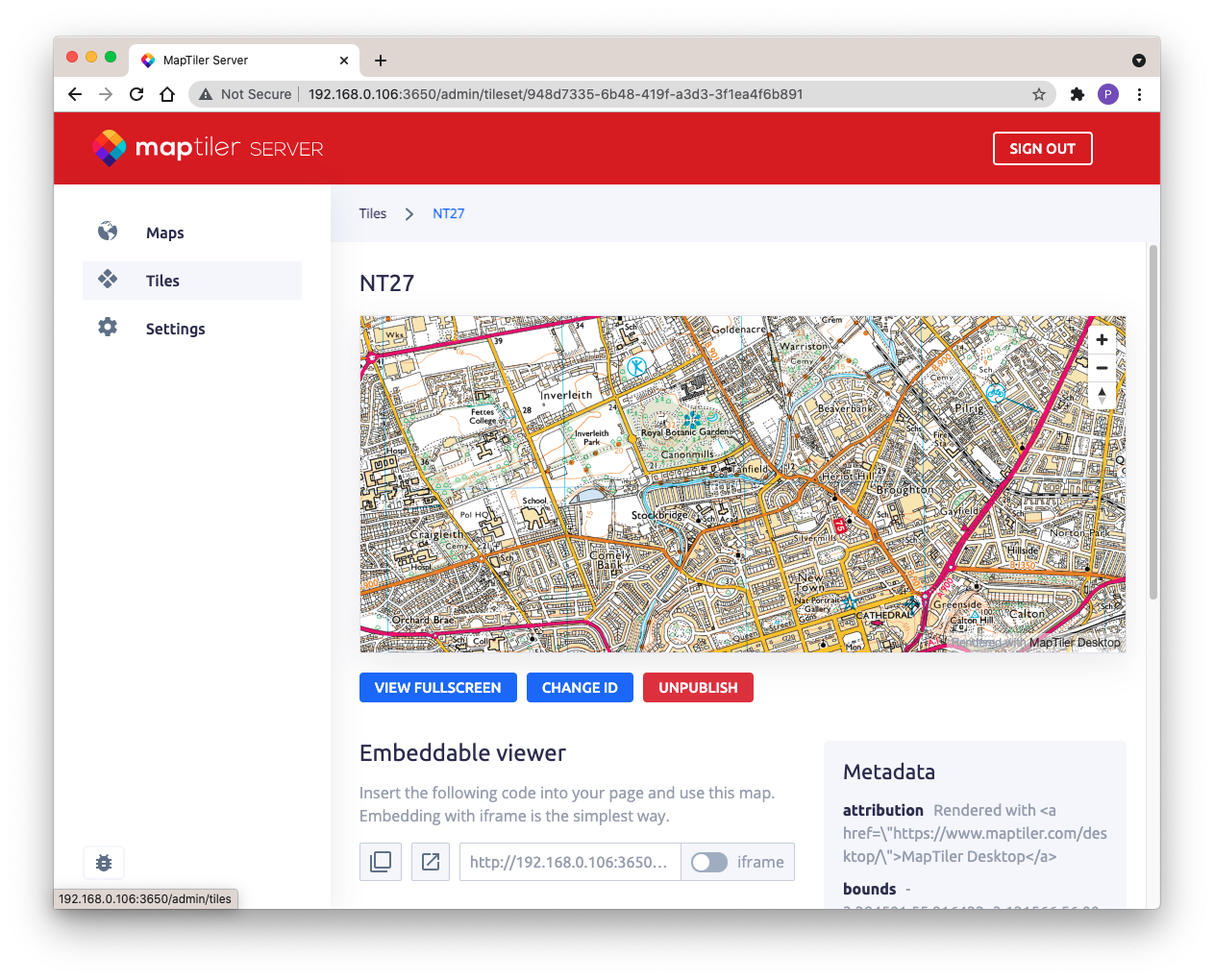 MapTiler Deskop will process the file and store it in the location we have specified. Now we can go on, install the MapTiler Server and configure it to serve the file we have just created.