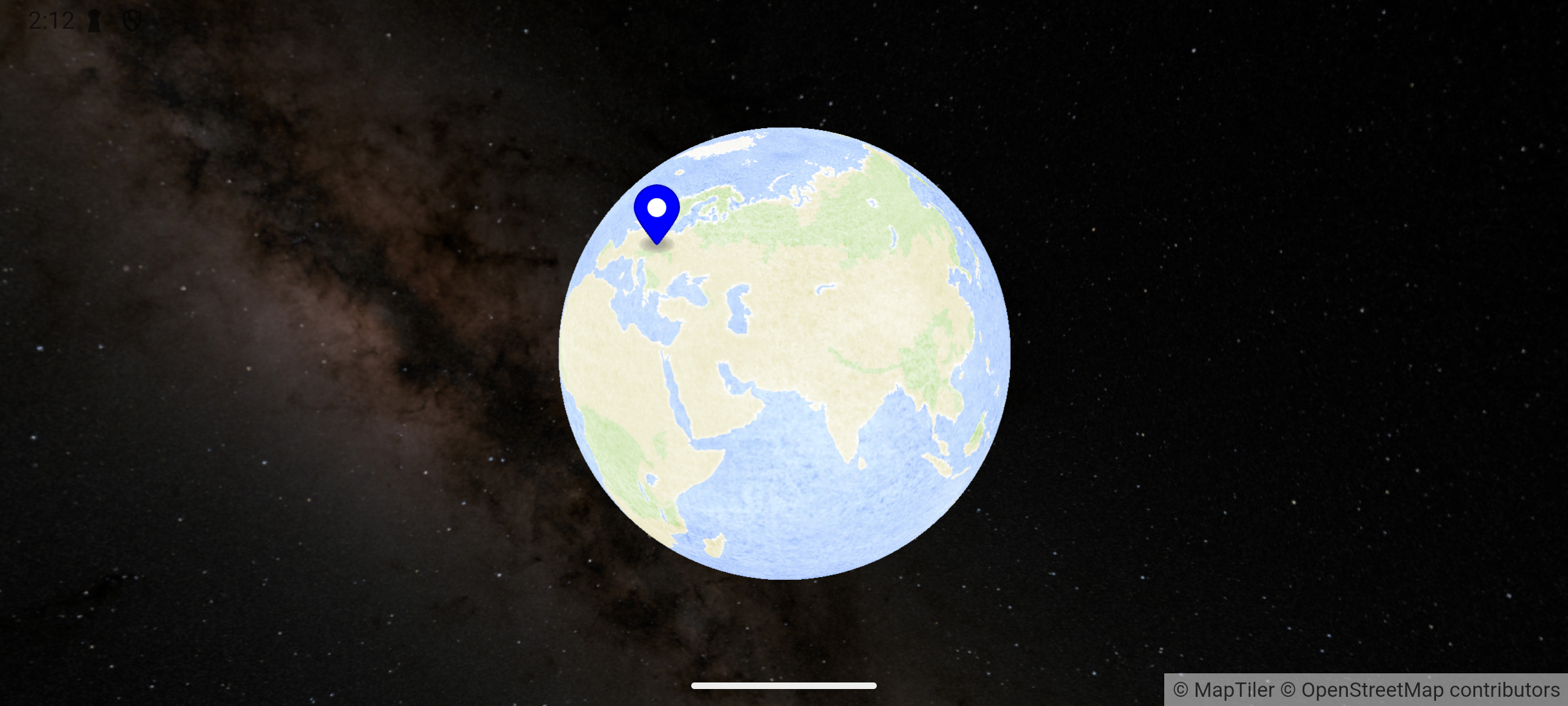 MapTiler SDK Swift also gives you options to change map projection to Globe, add space background behind it and annotate your data with markers.