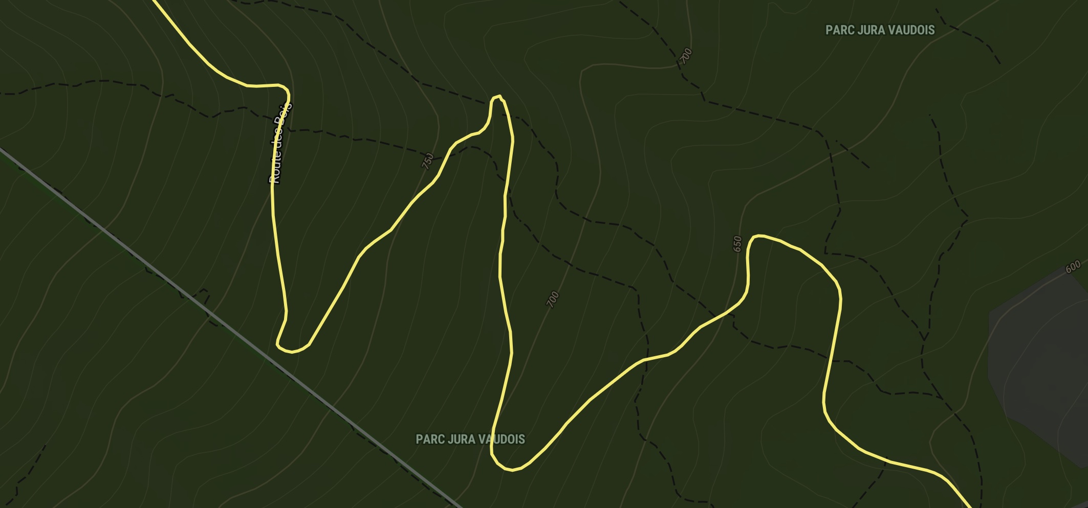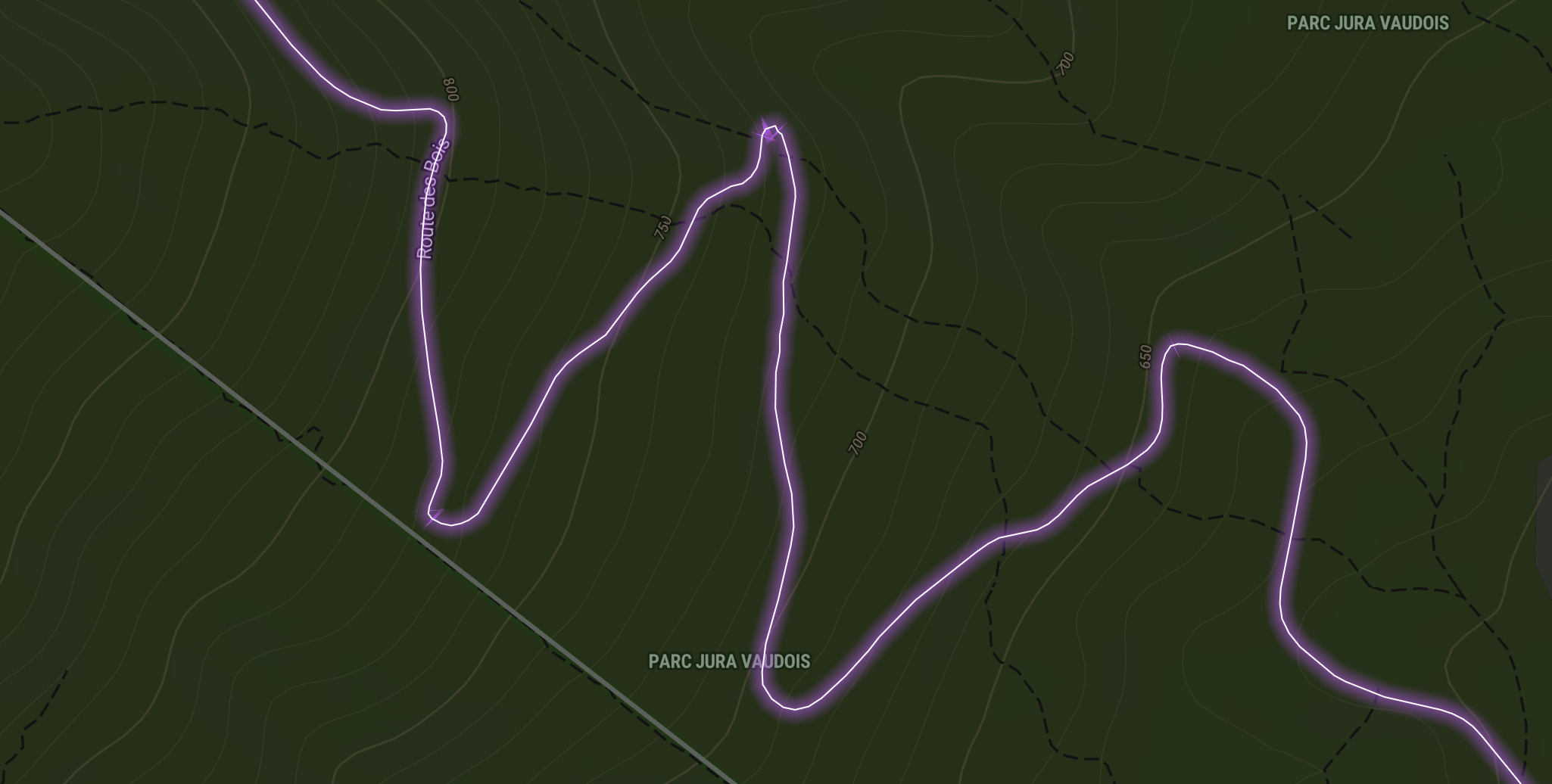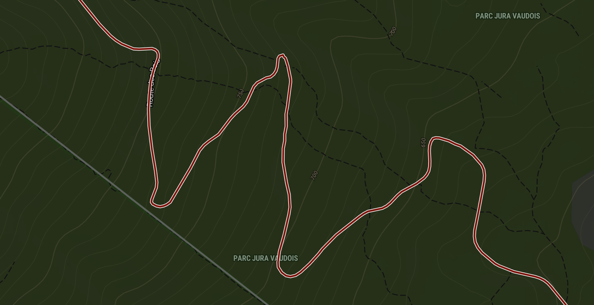 Without the helpers to create a road with an outline, one must draw two layers: a wider base layer and a narrower top layer, fueled by the same polyline data. This requires ordering the layers properly and computing not the width of the outline, but rather the width of the polyline underneath so that it outgrows the top road layer of the desired number of pixels.